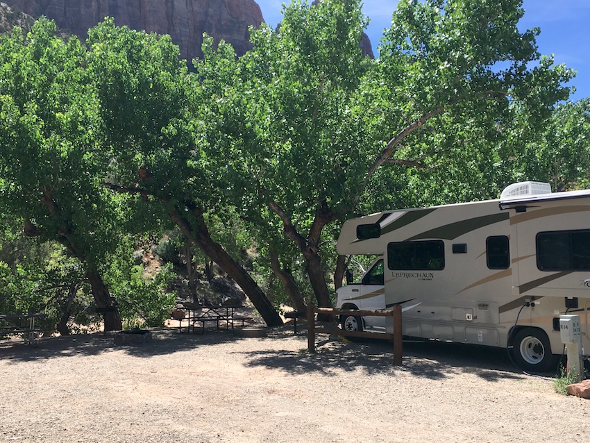 Übrigens war es einiges wärmer hier im Zion NP und die Sonne schien wunderbar. Wir bekamen die Site 13 Riverside zugewiesen. Das war ein wunderschöner Platz. Traumhaft gerade am Fluss.