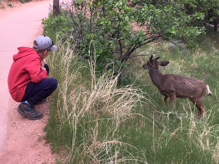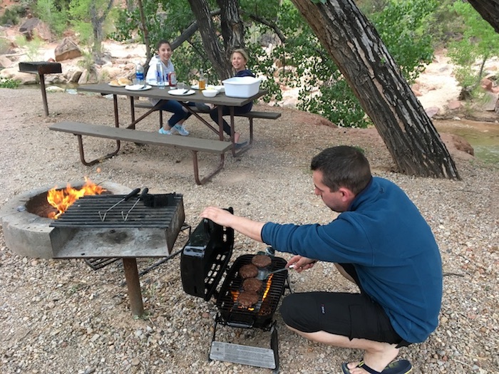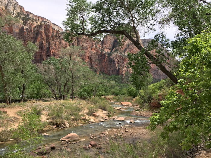 So nutzten wir die Zeit um uns aus den Rucksäcken mitten im schönen Zion NP zu verpflegen.