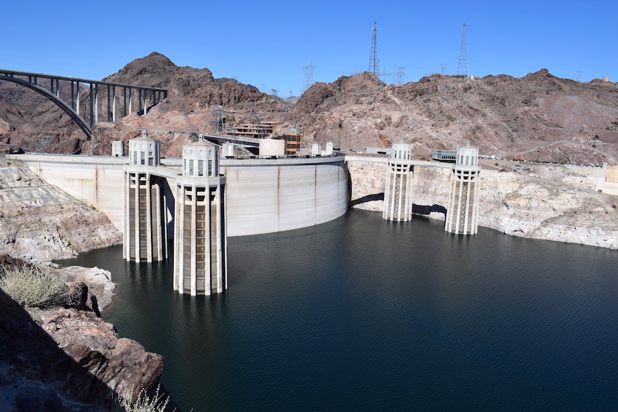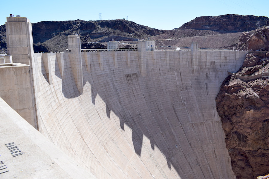 Nach 3h mit einigen Fotostopps sind wir am Hoover Damm. Parkplatz gesucht und mit Geduld auch fündig geworden. Die Sonne brannte schon ziemlich vom Himmel und es war bedeutend wärmer hier.