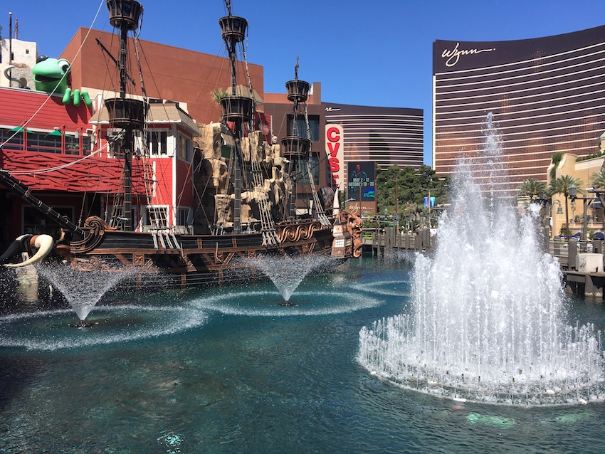 Wir fuhren zum Circus Circus RV Park und waren nach Mittag vor Ort. Leider hatte ein Fremder sein WoMo auf unserer Site geparkt somit mussten wir warten und es zog sich alles ein bisschen hin bis wir, einige Site daneben, endlich unser WoMo parken konnten. Schnell alles anschliessen und die Klimaanlage anschalten, denn für uns war es, im Verhältnis zu den letzten Tagen, ziemlich warm. Nur knapp 30 Grad für Las Vegas vielleicht eher kalt. Sie hatten die letzten Tage auch eine Kältewelle und nur 26 Grad. Dann kurz die Kleidung richten also der Aussentemperatur anpassen und ab zum Strip. Wir entschieden uns zu Fuss loszugehen. Unterwegs haben wir uns kurz verpflegt und weiter ging’s in den Rummel.