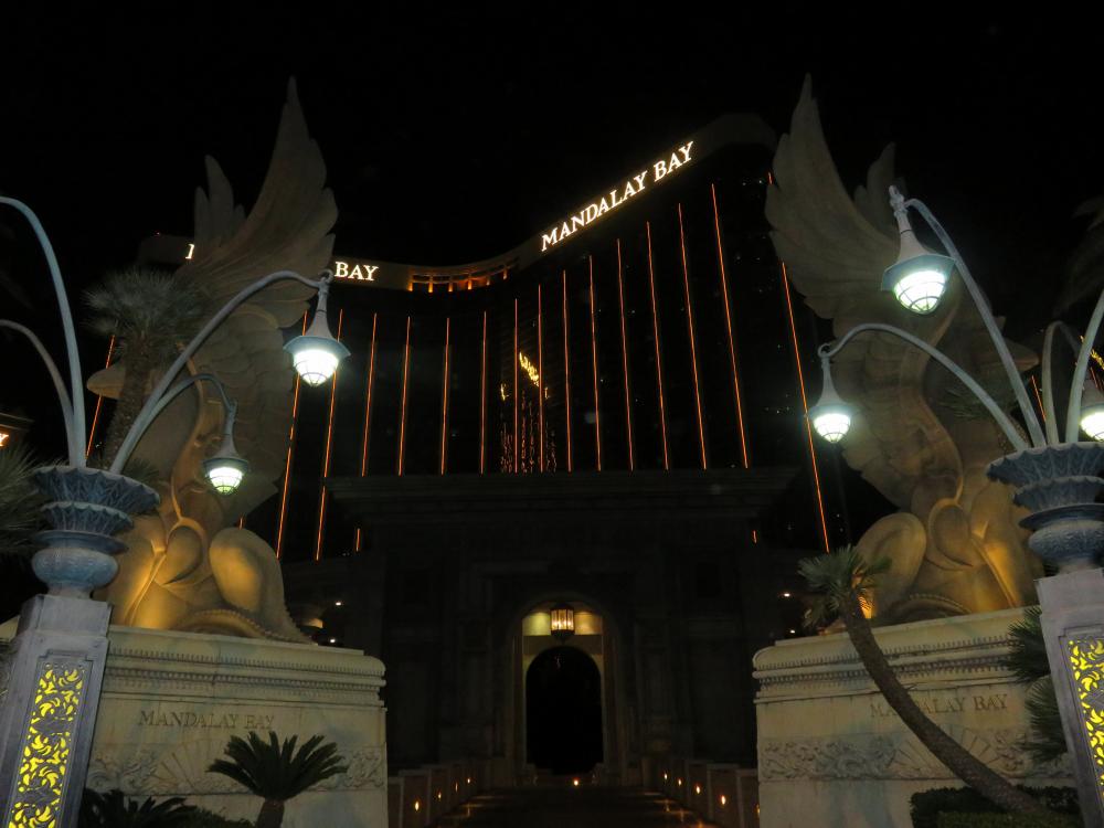 Wir hatten einen Direktflug Zürich - Las Vegas. Nach nicht ganz 12 Stunden landeten wir um 20.30 Uhr in Las Vegas. Draußen empfängt uns eine Hitze von 33 °C. Für zu unserem Hotel  Mandalay Bay nahmen wir ein Taxi. Das Hotel hat ja über 3300 Zimmer und wir hatten doch einige Bedenken ob wir unser Zimmer finden würden. Wir bekamen das Zimmer 29.235. Gebucht hatten wir ein Doppelzimmer, aber was wir dann antrafen war der Wahnsinn. Wir erhielten eine Richtige Suite d. h. 2 Schlafzimmer, 2 Badezimmer, 2 WC, 2 Salons, 1 Kochnische , 1 Essecke, und insgesamt 4 riesige Fernseher, total übertrieben. Wir wollen ja nur 2 mal übernachten. Nachdem wir aus dem Staunen heraus waren machten wir uns auf den Weg zum Strip. Wir spazierten ein Stück den Strip rauf und runter, wahrscheinlich mit offenem Mund, denn es war doch alles etwas neu für uns Landeier. Kurz nach Mitternacht ( immer noch 30°C) kamen wir zurück zum Hotel. An der Bar noch einen kleinen Schlummertrunk und dann ab ins Bett. Zu unserer Überraschung findet man sich auch in so einem riesigen Hotel sehr gut zurecht.