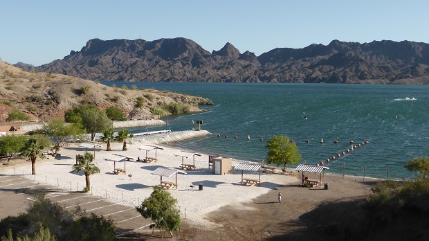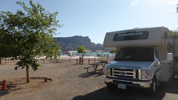 Der weitere Weg über die 62 ist richtig klassisch amerikanisch: gerade einspurige Straße, die am Horizont endet... gut 160 mi fahren wir bis zum Cattail Cove CG vor Lake Havasu mit einem Tank- und Einkaufszwischenstop (und die Jungs bekamen zwischendrin mal ein Eis zur Abkühlung). Beim Tanken mussten wir übrigens einen zip-code eingeben - nicht unseren, sondern einen amerikanischen - damit hat es aber geklappt.