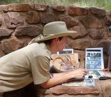 Wir frühstücken wieder draussen, der Sturm hatte sich zum Glück gelegt. Um 10:30 marschieren wir zum shuttle, um zu den emerald pools zu wandern. Auch wir trafen den super netten deutschsprechenden ranger an, der uns einiges über die Tiere im Zion erzählte: