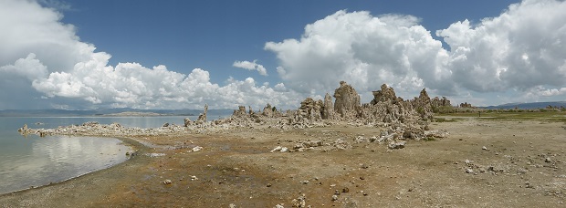 Um 11:15 fahren wir weiter zu den South Tufas - dort gilt unser annual pass, sodass wir die 3$ Eintritt je Erwachsenen sparen. Schon beeindruckend diese Gebilde - quasi Tropfsteinsäulen aus dem Wasser heraus. Von Süden zieht ein Mega-Unwetter heran, aber wir schaffen es, den Loop trocken zu beenden.