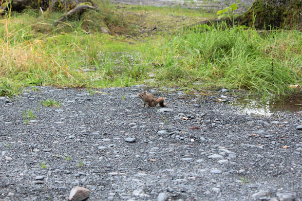 Es ist auch heute wieder recht schön warm und wir haben keine Eile. In meinem Campingführer hatte ich einen Übernachtungsplatz auf dem Parkplatz an einer alten Goldmine entdeckt. Das klang recht interessant und so verließen wir in der Höhe Girdwood den Seward Hwy. Die Straße führt durch den Wald und ist die letzten Meilen nicht mehr befestigt. Für Sara gab es aber kein Problem. Auf dem Parkplatz vor der Mine suchten wir uns unter den Bäumen ein schönes Plätzen. Den Nachmittag verbrachten wir mit dem Besuch des kleinen Museums und machten eine Wanderung zum Fluss im dem auch heute noch Gold gewaschen werden kann. Uns kamen zwei Jungen entgegen, die stolz waren ein kleines Stückchen gefunden zu haben.