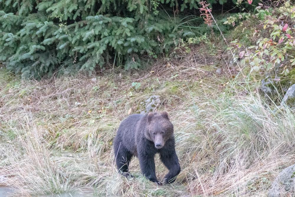 Dann sahen wir jedoch weitervorne noch einen anderen Bären. Diesen konnten wir auch von einer Brücke aus fotografieren.