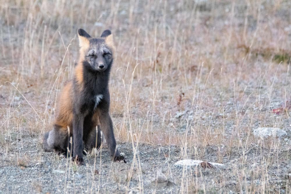 Unterwegs sahen wir noch einen schwarz-roten Kreuzfuchs welcher über die Strasse lief und sich für ein paar Fotos ablichten liess.