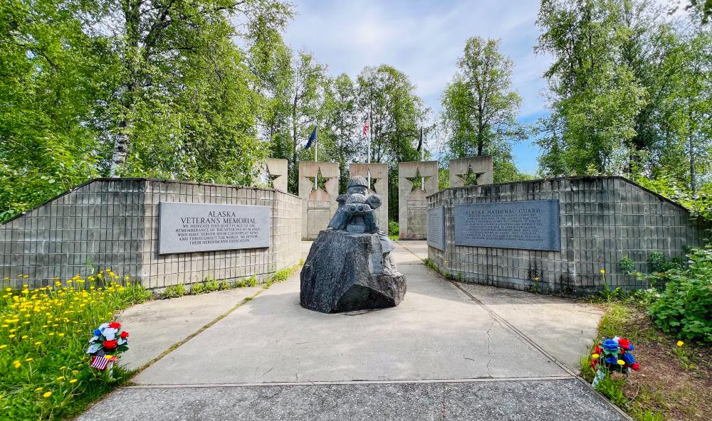 Unterwegs sahen wir auch noch eine Elchkuh, welche wir einige Zeit beobachten konnten (leider kein Foto). Am Alaska Veterans Memorial machten wir einen Halt, damit wir uns diesen ansehen konnten.