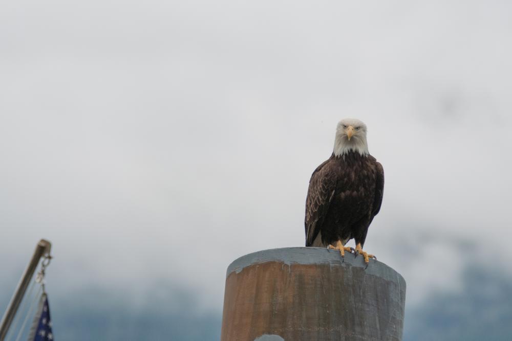 Während des Wartens haben wir noch einen Weisskopfseeadler auf einer Laterne gesehen.