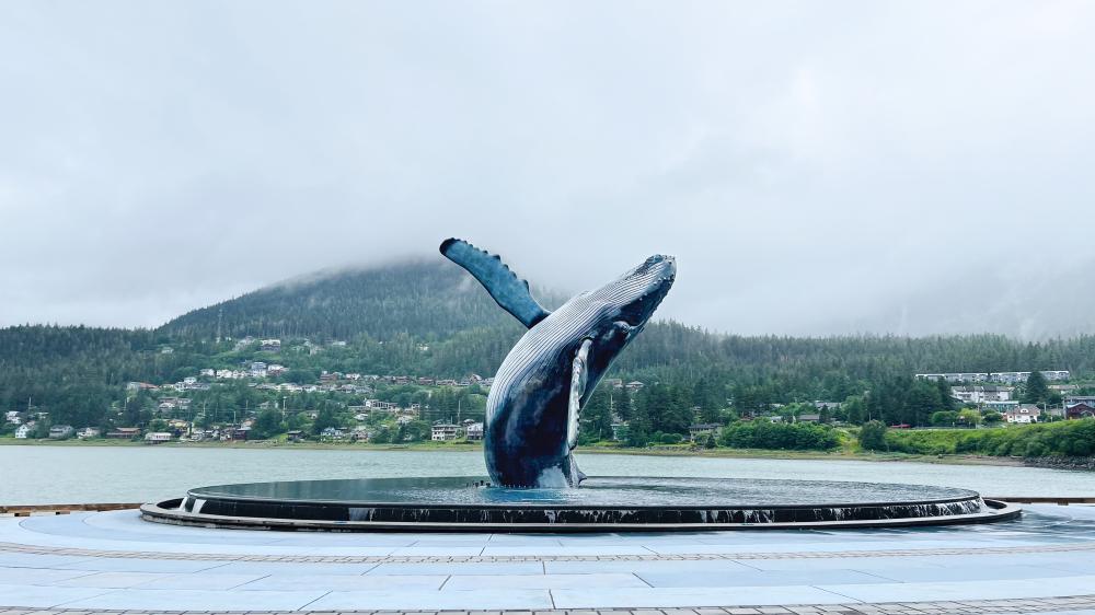 Wieder zurück über die Brücke bogen wir gleich darauf ab, um die Walstatue zu besichtigen (den Mayor Bill Overstreet Park).