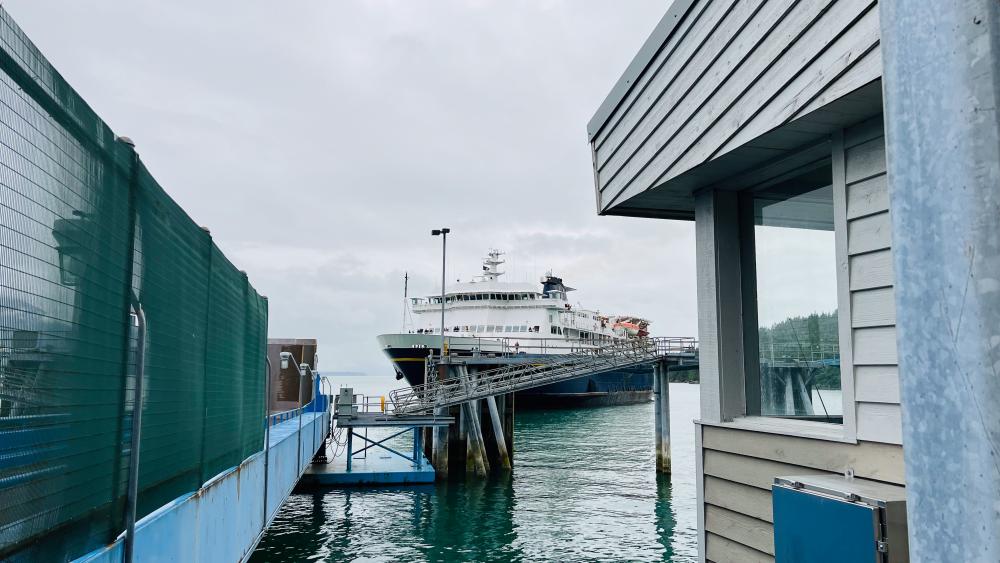 Die Zeit bis die Fähre kam verachten wir mit Lesen, PC, das Fährterminal zu besichtigen etc. (wir wollten nicht nochmals in die Stadt fahren).