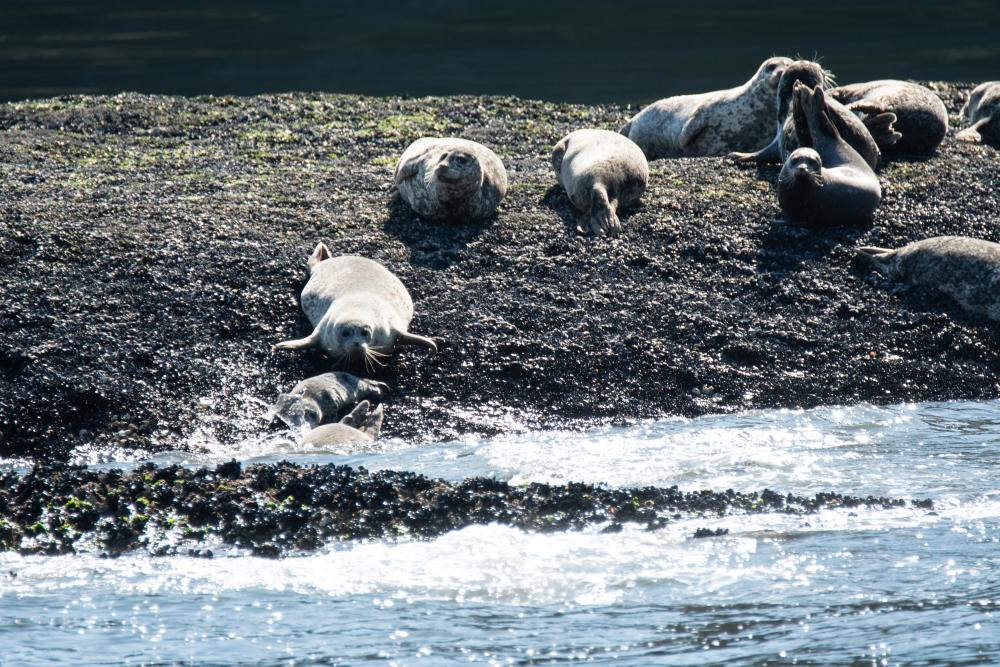 Irgendwann liessen wir die Tiere weiterziehen und drehten um. Wir sahen noch einen Grauwal, welcher oft nur mit seiner Seitenflosse auf das Wasser schlug sowie ein paar Robben.
