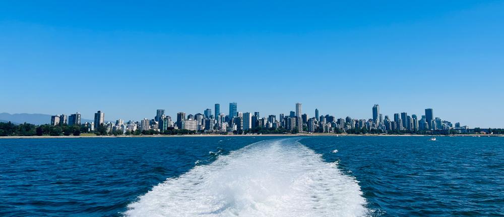 Auch heute trafen wir uns um 08:30 Uhr, schmierten unsere Brote und packten alles ein, was wir heute auf der Waltour benötigen. Bevor wir aber nach Granville Island aufbrachen, gingen wir noch Frühstücken. Wir liefen wieder an den Hafen und holten uns etwas kleines bei Starbucks. Wir setzten uns draussen hin und beobachten das rege treiben. :)