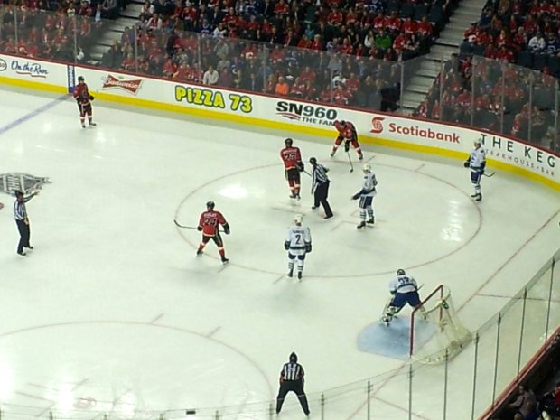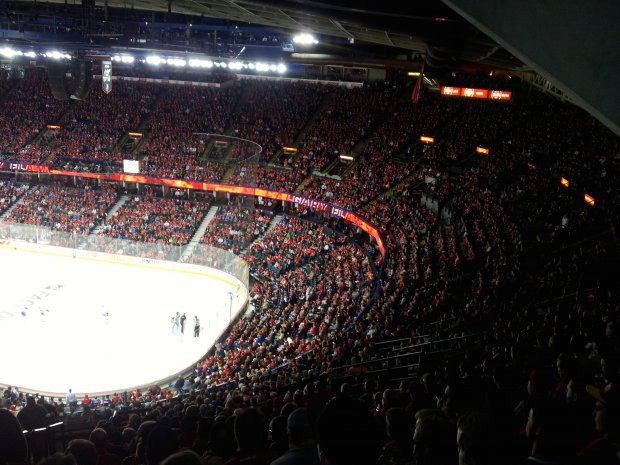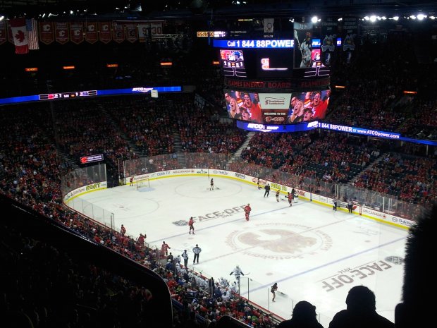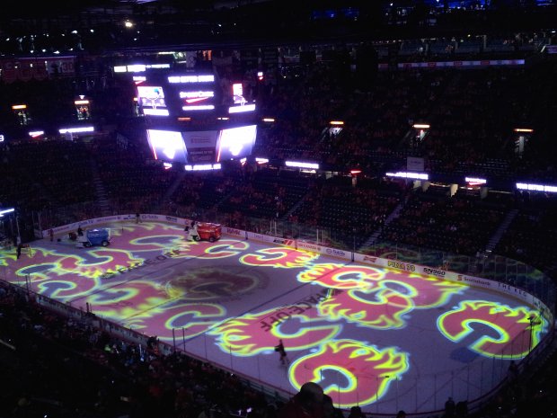 Meine Kamera musste ich leider am Eingang abgeben, was mich doch sehr nervte. Das Spiel begann um 20.15 Uhr. Davor war noch eine riesige Show mit der Eröffnung der Saison 2014/15. Es war eine wirklich sehr beeindruckende Show, was die Calgary Flames darboten.