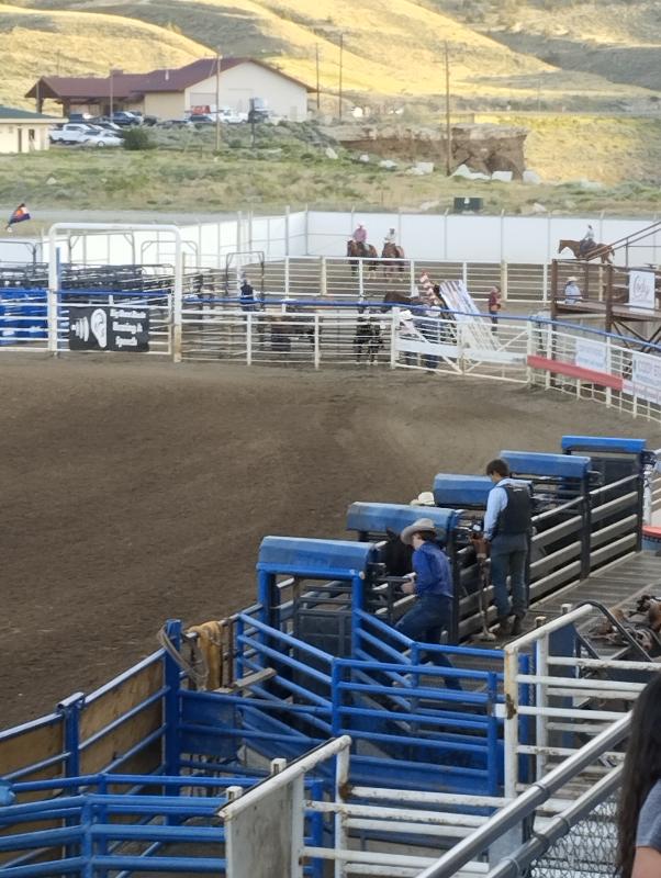 Eine Weile schauten wir zu, dann holten wir eine Pizza und fuhren schließlich weiter zum Night Rodeo, wo wir eine spannende Show erlebten. Wie hier im Forum empfohlen saßen wir im Buzzard Roost und hatten die beste Sicht. Die Stimmung war klasse, auch wir fieberten mit.