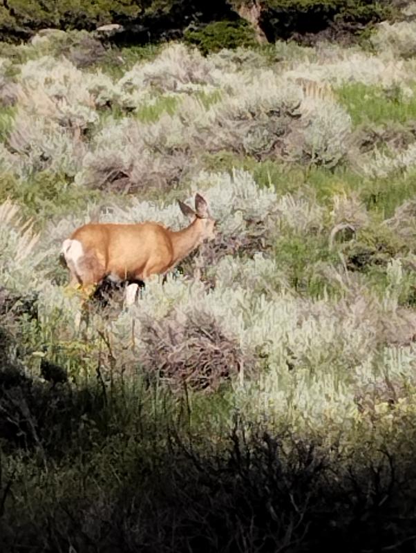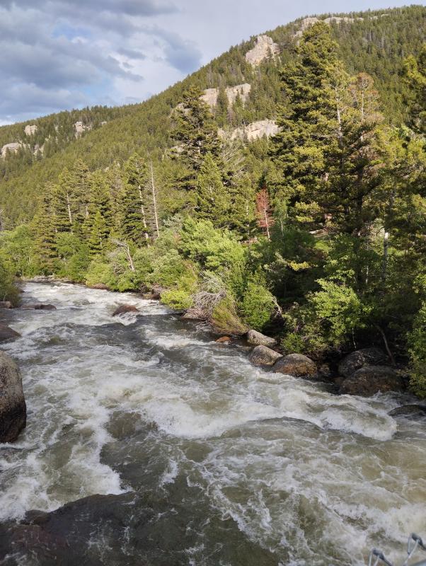 Mit der Weiterfahrt stiegen die Temperaturen, nachts konnten wir nun auf mehrere Schichten verzichten. Die Überlegung zur Mormon Row zu fahren verwarfen wir zugunsten des Oxbow Bends. Die heutige Strecke war landschaftlich abwechslungsreich. In Dubois war gerade Pferdemarkt, in Lander erledigten wir unseren Einkauf, dann fuhren wir weiter zum Popo Agie CG, einem kleinen Natur-Camping, von dem aus wir eine Wanderung machten. In der Yurte gegenüber unserer Site wohnten nette Leute aus Wyoming, sie luden uns ans Lagerfeuer zu einer Runde Dosenbier ein.