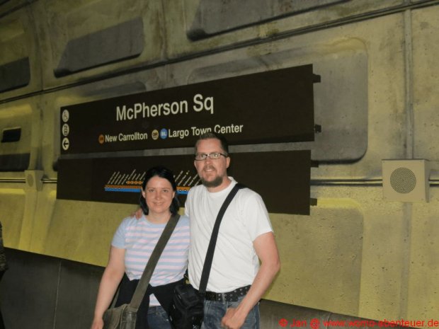 In der Metro bzw. noch auf dem Bahnsteig wurden wir von einer netten Einwohnerin direkt eingewiesen, wo wir hin fahren müssten, um wirklich zentral auszusteigen und o.a. das Weiße Haus sehen zu können. Wir fuhren also bis zur McPherson Quare Metro Station (https://goo.gl/0C9iNe) und gingen zu Fuß zum Lafayette Square, sahen das weiße Haus aus der Ferne und umrundeten das Washington Monument. Wahnsinn, was da los ist in der Mittagspause, da wird teilweise Fußball gespielt etc.