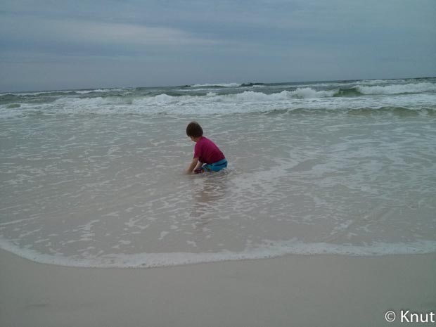 Der Sand ist hier besonders schön weiß, das Wasser aber ganz schön kalt. Der Golfstrom ist zu weit weg.