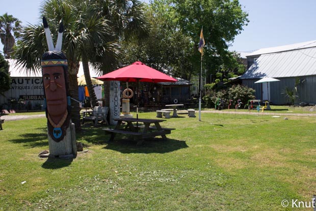 Wir schauen uns noch das Owl Cafe (Platz Nr. 2 von 24 Restaurants in Apalachicola laut Tripadvisor) ein Strasse weiter an, verzichten aber auf einen Restaurant Besuch. Wir wollen lieber unsere Shrimps grillen.