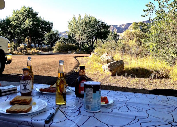 Stubbs Grillsauce und Corona auf dem Campingtisch... das lasse ich mir gefallensmiley. Und Essen im Freien in so herrlicher Umgebung ist sowieso mit das Schönste am Campen.