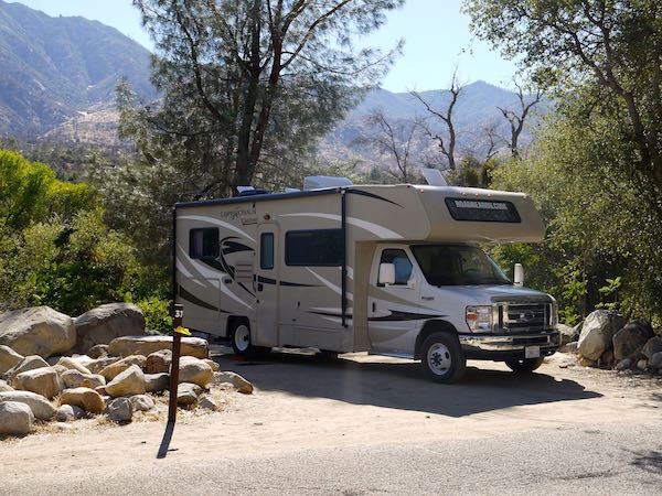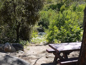 Bei nun drückender Hitze ging es dann das kurze Stück auf de Mountain Hwy 99 bis zum CG Camp Three. Dieser liegt schön entlang des Kern River und war trotz der vielen Leute in Kernville wie leergefegt. Wir drehten eine Runde und entschieden uns für die Site 37. Diese hatte fast direkten Zugang zum River, nur ein paar Steine musste man überwinden.