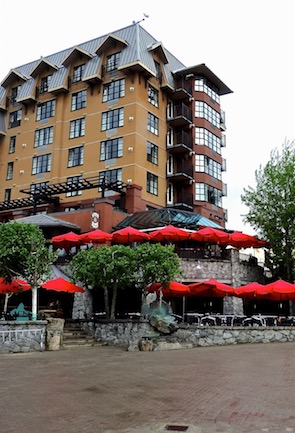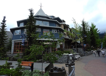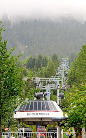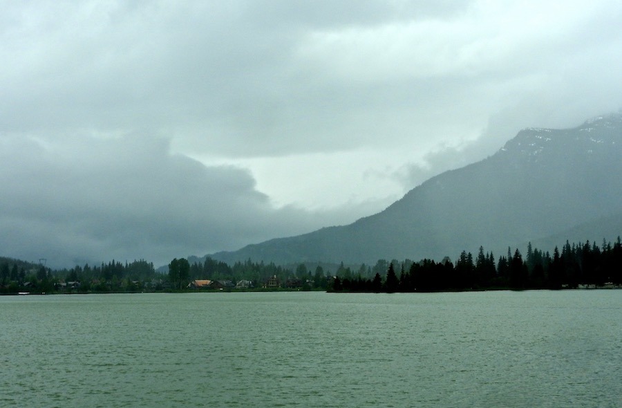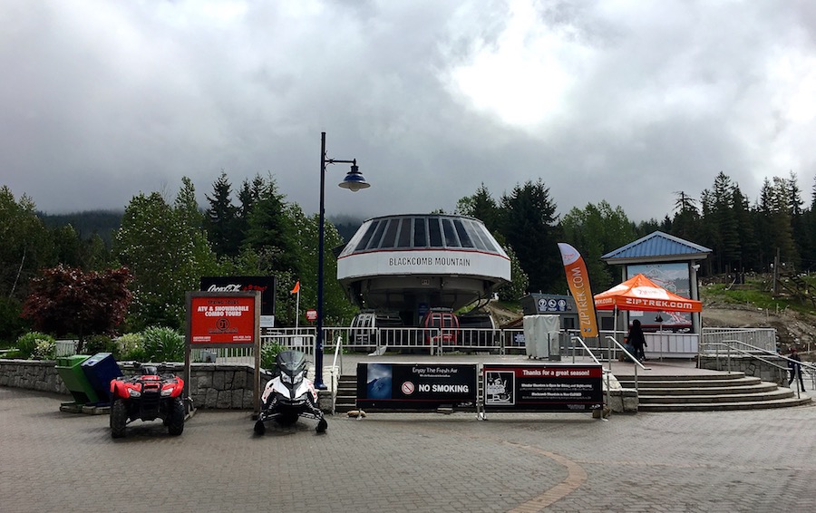 Zwischendurch regnete es immer wieder, wodurch auch kaum jemand unterwegs war. Bei schönem Wetter ist hier bestimmt einiges los. Heute aber wirkte alles wie ausgestorben. Die umliegenden Berge waren weiterhin in dicke Wolken gehüllt, so dass auch die Blackcomb Gondelbahn stillstand.