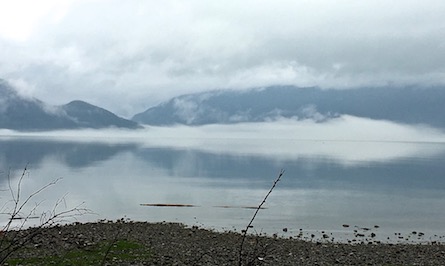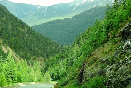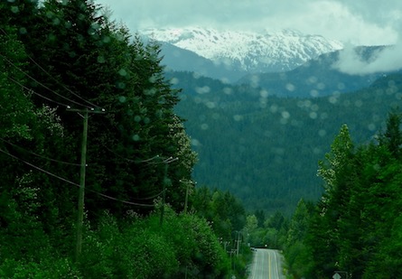 Schön war dafür die Fahrt über die Duffy Lake Road bis nach Lillooet. Erst ging es am Duffy Lake entlang, der aber noch im tristen Grau lag. Weiter ging es dann noch immer im Regen zum Teil in Serpentinen kräftig bergauf, was aber mit dem kräftigen Motor unseres TC kein Problem war. Die Straße war insgesamt in einem gutem Zustand und bot immer wieder interessante Ausblicke auf die grüne Umgebung und die schneebedeckten Gipfel.