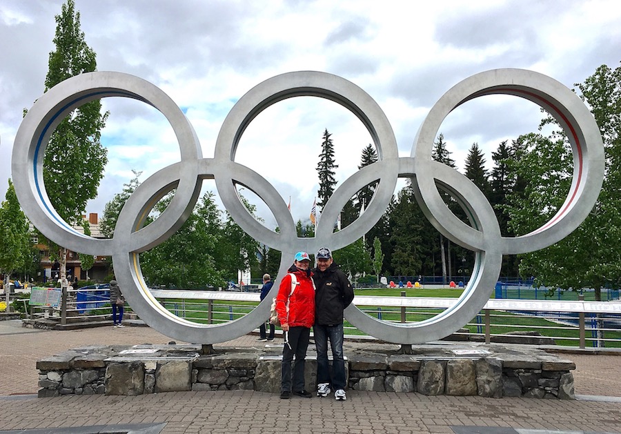 Als wir Whistler erreichten, hörte der Regen auf und es wurde sogar etwas heller. Daher nutzten wir die Gelegenheit, um uns diesen bekannten Ort etwas näher anzuschauen. Wir parkten auf einem der großen Parkplätze und machten uns auf den Weg. Zuerst zum Olympischen Platz und dann kreuz und quer durch das Zentrum. Auch wenn die Olympischen Winterspiele schon ein paar Jahre her sind, spürt man diesen Geist noch. Kann aber auch dran liegen, dass man die Bilder des Ortes mit den Zeromenien aus dem TV von damals noch im Kopf hat.