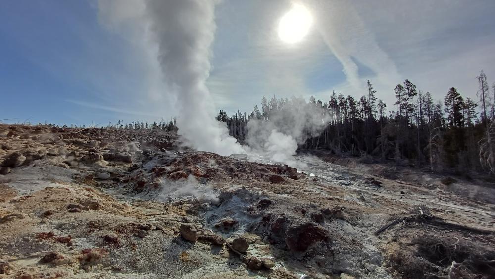 Wir wollten sowohl das Back Basin als auch das Porcelain Basin erkunden. Der Rundweg hat eine Länge von etwa 4,7 Kilometern. Los ging es mit dem Back Basin. Alle paar Meter trifft man hier auf bunte Quellen, brodelnde Geysire und dampfende Erdlöcher. Ein wirklich surrealer Anblick. Wir kamen auch am Steamboat Geyser, dem größten aktiven Geysir der Welt, vorbei. Das Porcelain Basin ist eine weite Ebene, hier sieht man überall Dampf aus der Erde aufsteigen und man fühlt sich wie auf einem anderen Planeten.
