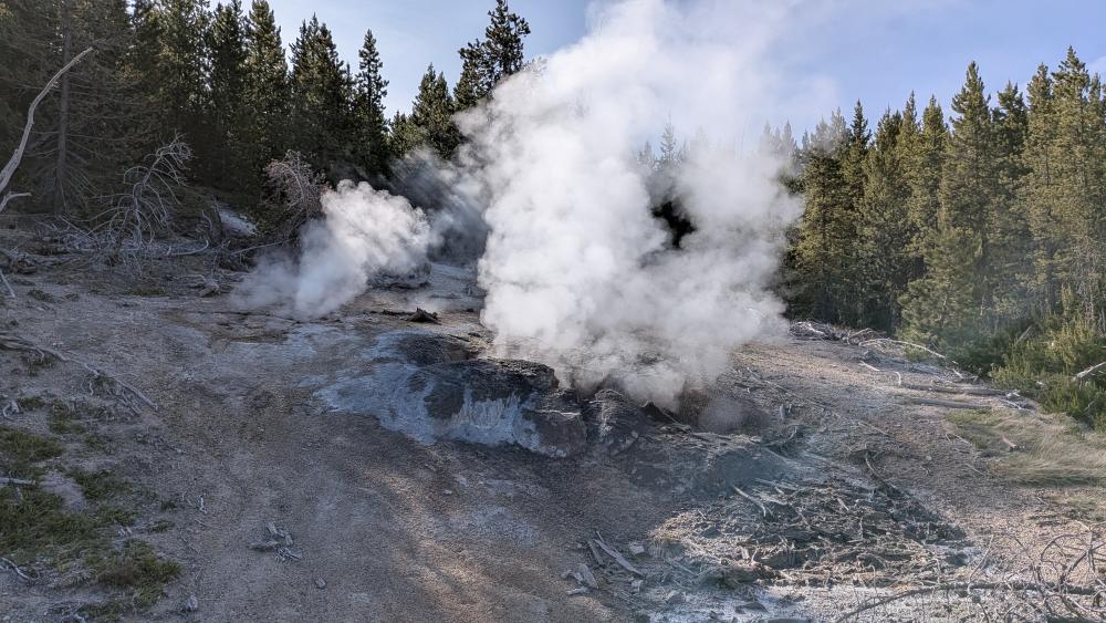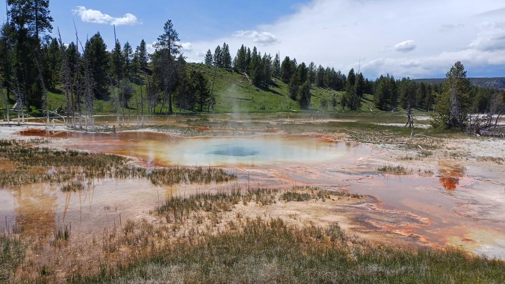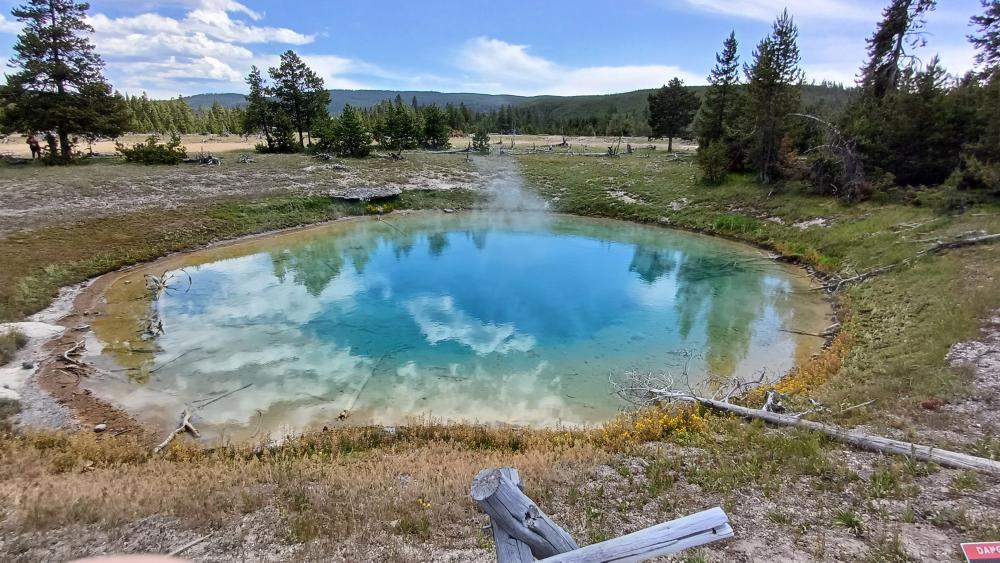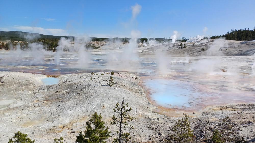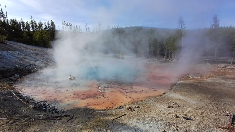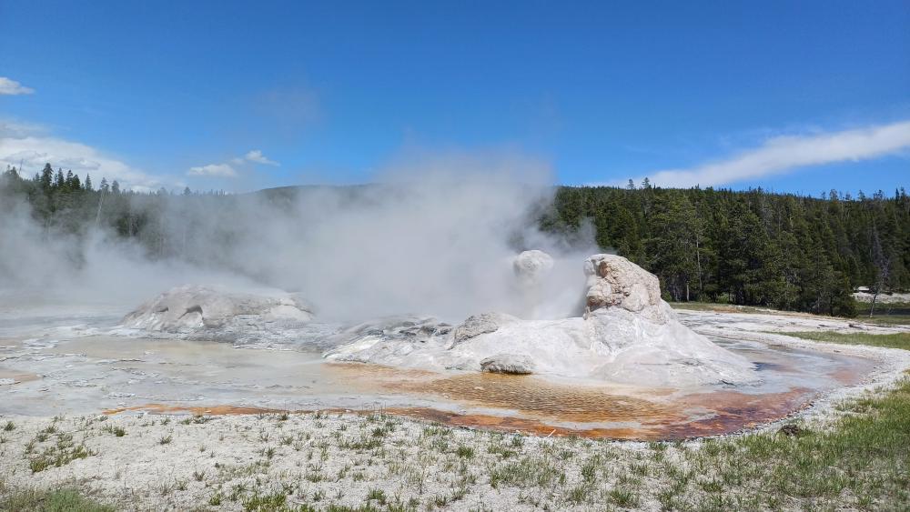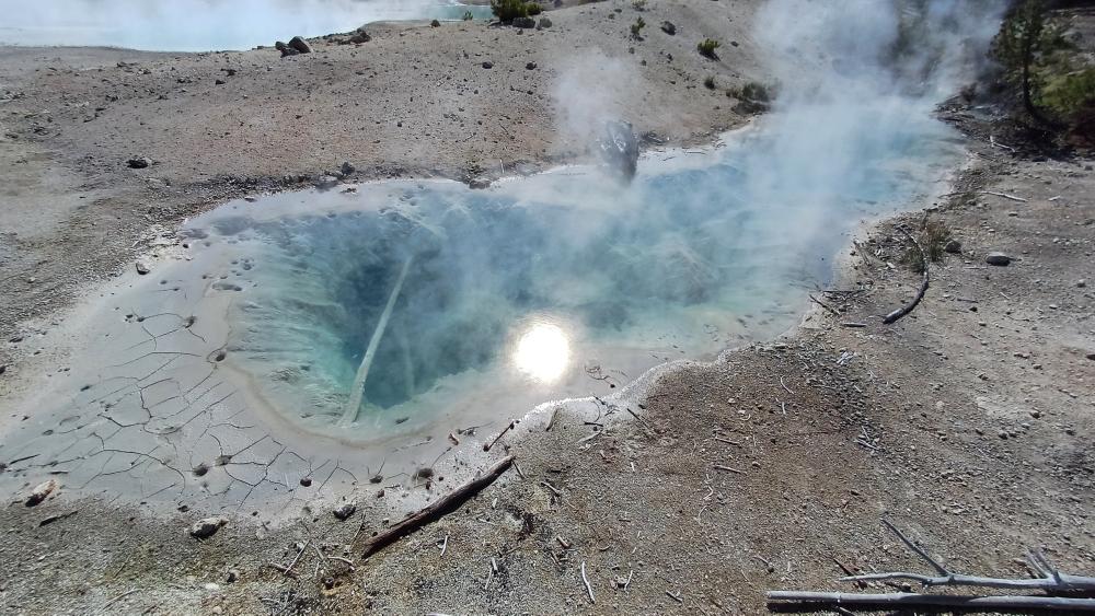 Im Anschluss liefen wir noch das komplette Basin ab, bis zum Morning Glory Pool. Dieser bzw. der Boardwalk war aber gerade im Umbau und so hatten wir keine Chance einen Blick auf ihn zu erhaschen. Schade, aber ein guter Grund, um irgendwann wiederzukommen!