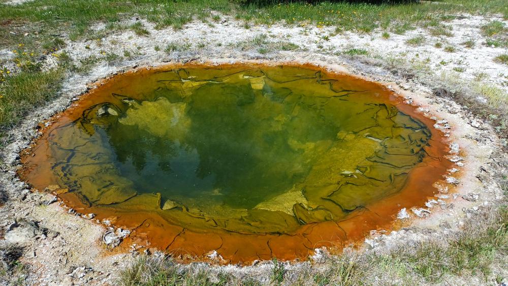 Die Menge an Pools und Springs und Geysiren in diesem kleinen Gebiet ist wirklich beeindruckend. Alle paar Meter leuchtet es in neuen bunten Farben. Es blubbert und brodelt und spritzt.