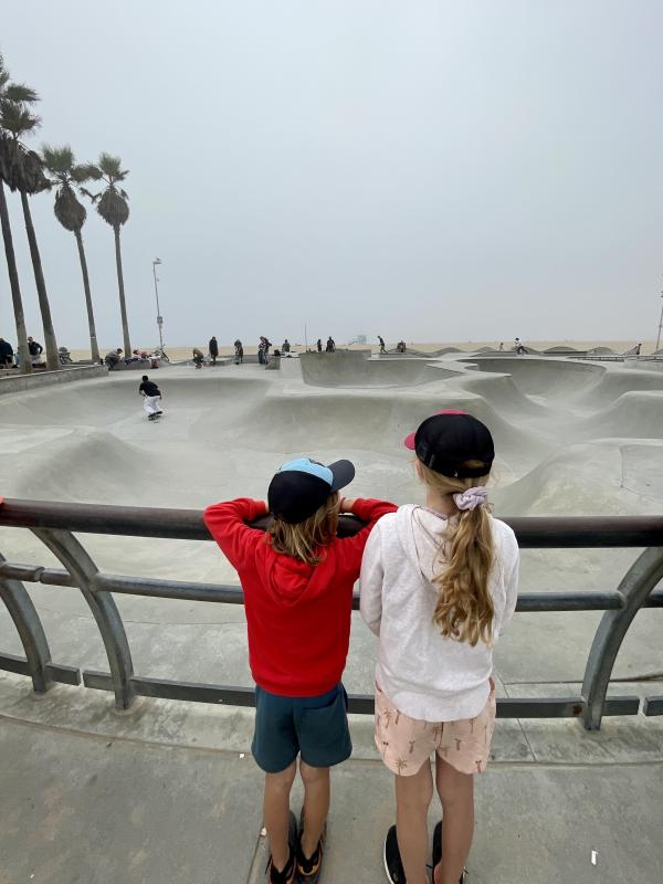 Fazit zu Santa Monica und Venice Beach: Das Fahrradfahren hier ist toll und auch die Touri-Shops haben v.a. auf die Kids eine anziehende Wirkung. Der Skaterpark ist toll und wir schauen den Skatern ganz lange zu. Allerdings hat es am Strand und auf den Strassen wieder sehr viele Homeless People. z.T. sind ganze Zelt-Städte am Strand aufgebaut. Das stimmt uns etwas nachdenklich und die Kids können es nicht verstehen, warum hier so viele Menschen auf der Strasse leben...