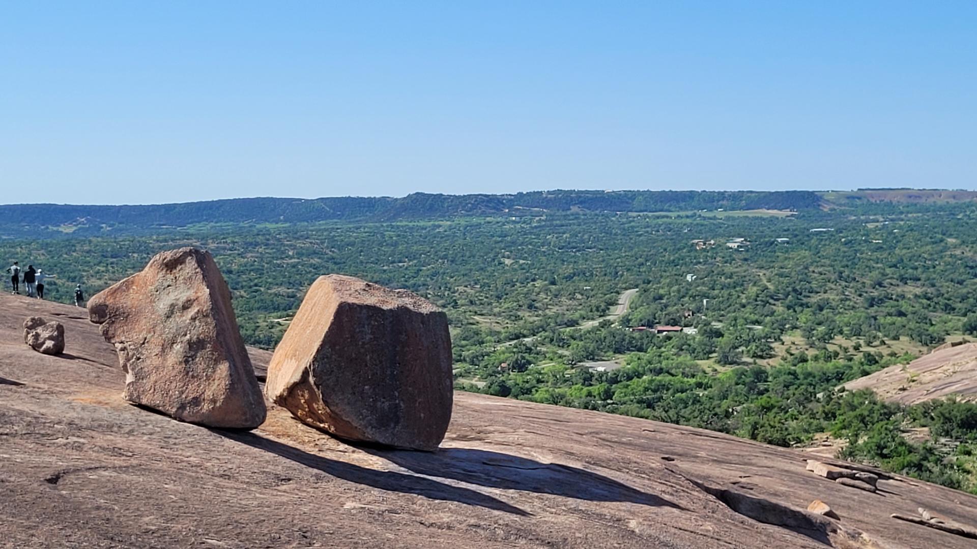Mo, 17.04.2023 Enchanted Rock SP/ Lake Brownwood SP  Willow Point Camping Area, Site am See Sind um 8:30 Uhr im Enchanted Rock SP ohne Online Ticket. Laufen sofort los, Summit Trail nach oben und andere, sind noch ziemlich alleine. Weiterfahrt durch viele Bluebonnets, laufen später den Oak Trail am Lake Brownwood, da auch Bluebonnets. 146