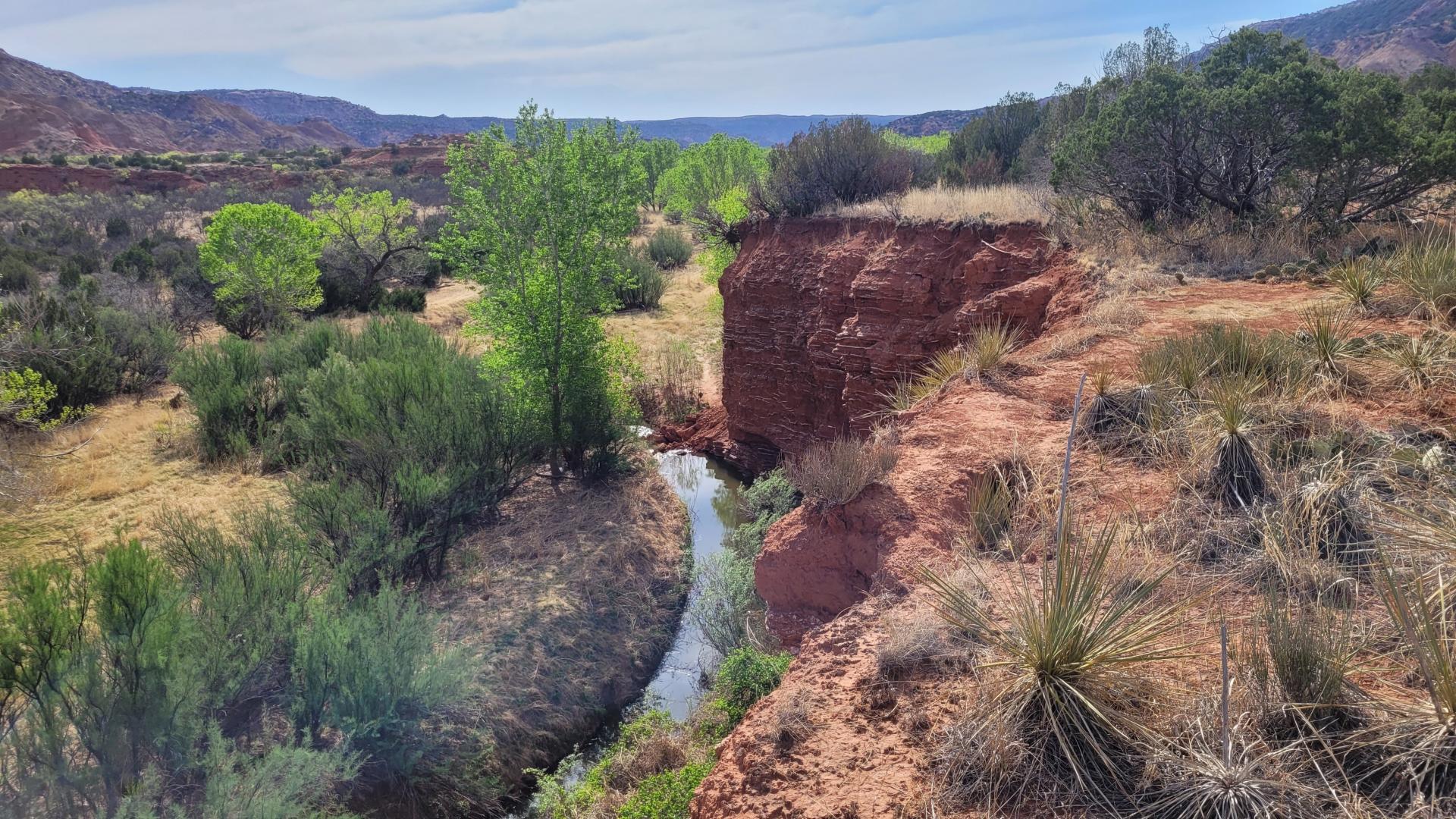Di, 18.04.2023 Caprock Canyons SP Honey Flat Camping Area Bisons sind auf dem Campground und auch die Präriehunde können wir beobachten. Es ist sehr heiß hier, daher beschränken wir uns auf Wandern am Vormittag und späten Nachmittag. Laufen den Eagle Point Trail und den Canyon Rim Trail.  258