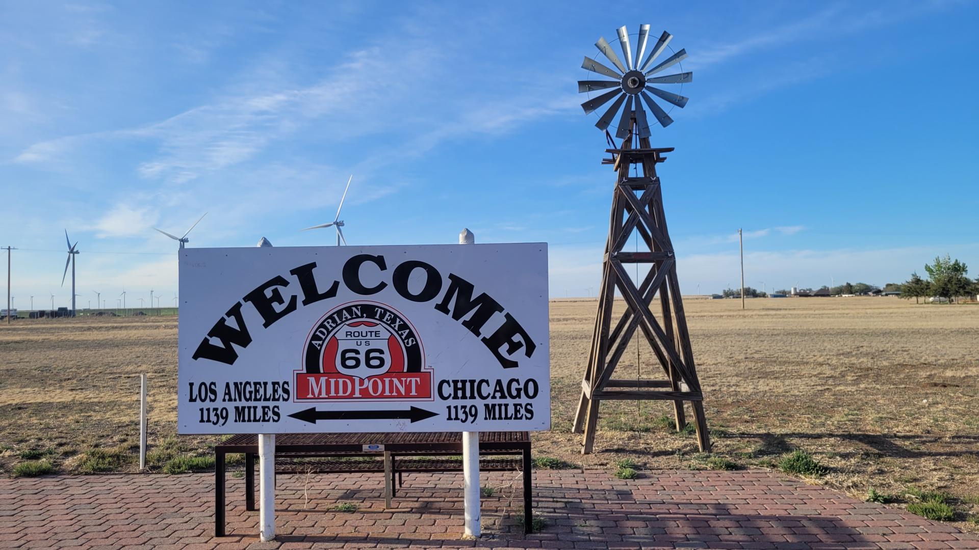Fr, 21.04.2023 Big Texan Steak Ranch / San Jon  San Jon Park, kostenloser City Park Verlassen Palo Duro Canyon am Nachmittag. Essen dann in der Big Texan Steak Ranch. Gefällt uns nicht als Übernachtungsplatz. Fahren zum San Juan Park mit Stopp Cadillac Ranch und Midpoint Route 66. 134