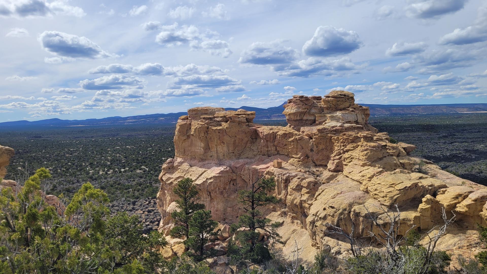 So, 23.04.2023 El Malpais NM Joe Skeen BLM CG , kostenlos Infos zum NM bei der Ranger Station auf BLM Land gut. Laufen da den schönen Nature Trail. Mit dem Jeep zu den Sandstone Bluffs, laufen und klettern da, toll der gelbe Sandstein vor der Lavalandschaft. Abends kalt, Campfire und Sternenhimmel. 136 9(Jeep)