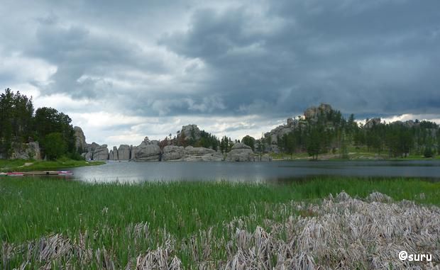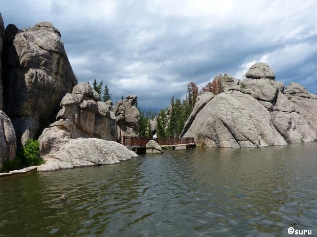 Im Ort Custer müssen wir noch ein paar Kleinigkeiten einkaufen (direkt hinter dem Ortseingang ist Lynn, eine Supermarktkette). Dann fahren wir das kurze Stück zurück und die SR 89 bis zum Sylvan Lake. Die Parkplatzsuche ist schwierig, aber wir finden noch einen Platz für unsere Wohnmobil und laufen um den malerischen See. Luca geht schwimmen, das Wasser ist kalt und außerdem sieht es nach Gewitter aus.