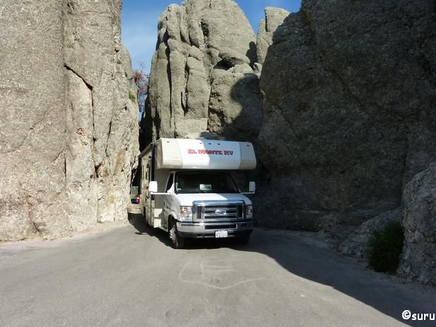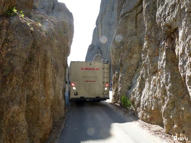 Wir werden nur etwas nass, im Wohnmobil warten wir das Gewitter bei Pancakes ab. Wir möchten unbedingt den Needles Highway fahren, also trauen wir uns, seht selbst, das Wohnmobil passt durch den Tunnel!