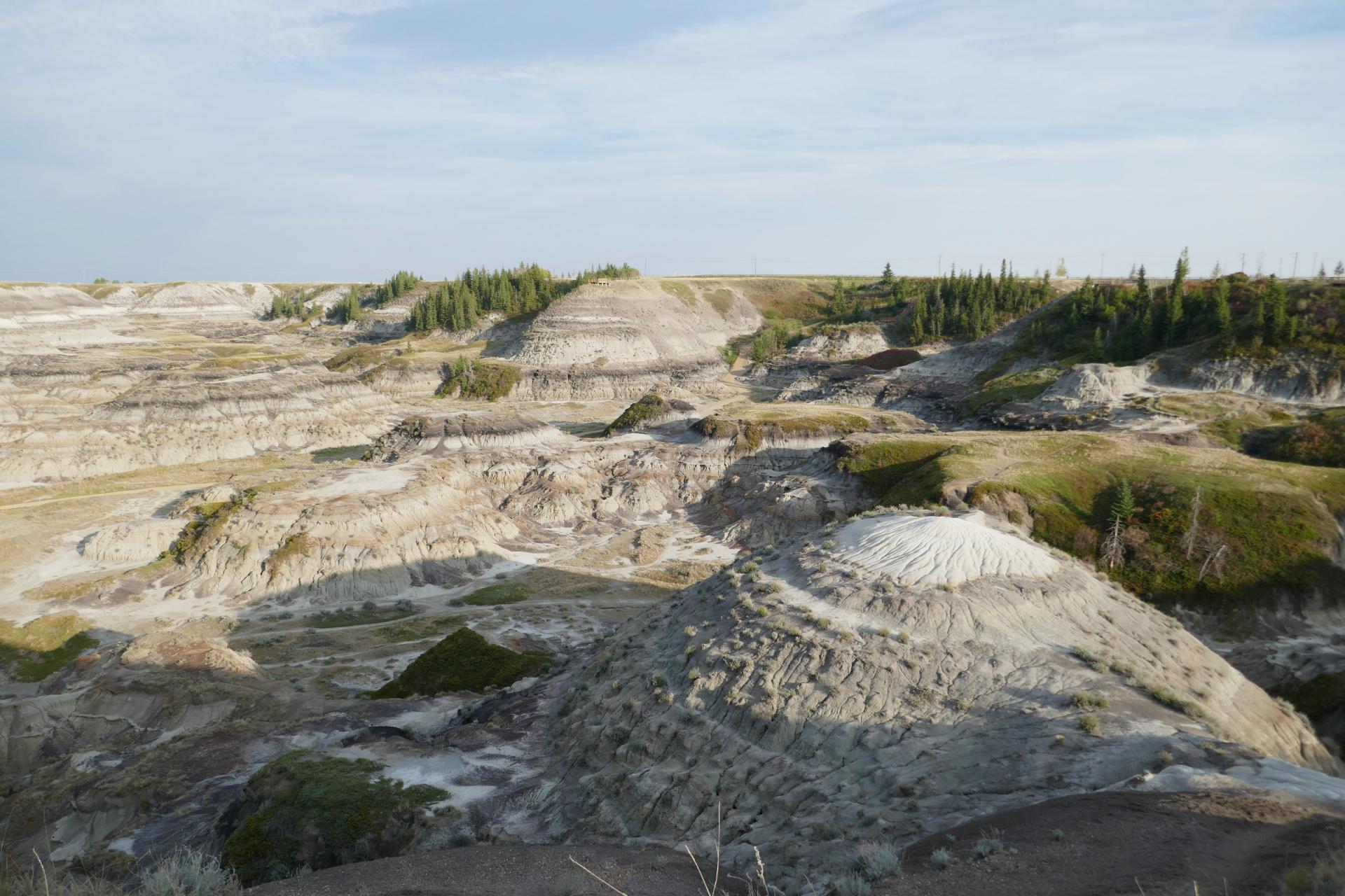 Badlands mit Nadelgehölzen, wirklich ein ungewöhnlicher Anblick. Könnte mir durchaus gefallen.