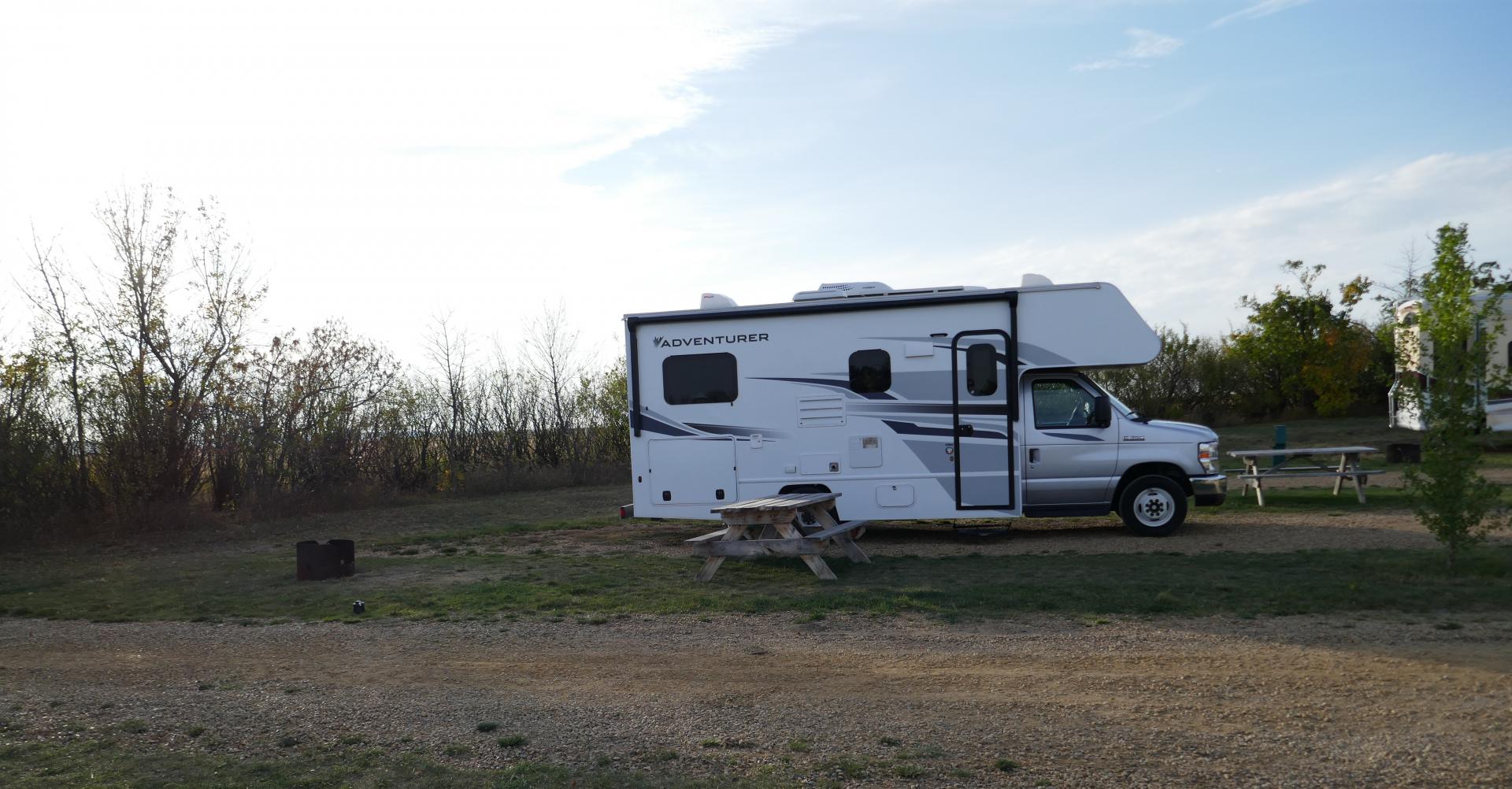 Es folgt der Großeinkauf, erst bei Walmart, dann im Canadian Superstore. Leider bekommen wir nirgendwo die Propan Bottles für den Grill, also fahren wir auch noch zu Home Depot, Canadian Tire, Bass Pro. Da gibt es sie auch nicht, sollen ausverkauft sein. Das dauert alles sehr lang und erst um 3 p.m. fahren wir zum Horseshoe Canyon Campground. Und was finden wir im Store des CGs: Die Gaskartuschen! Wir bekommen auch noch Feuerholz und nehmen eine schöne Site am Rand.