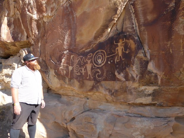 Vom Steinaker Campground sind wir heute morgen frühzeitig gestartet, 8.30 Uhr war das Treffen für unsere Family Rafting Tour auf dem Green River. Mit Adrift Adventures in Jensen gebucht, hatten wir heute eine im allgemeinen gemütliche Flussfahrt mit einigen Stromschnellen, haben eine unberührte Landschaft und Natur genossen, vertrauenserweckend und souverän geführt von unserem Guide John. Wir waren 9 Teilnehmer, die auf zwei Boote mit jeweils einem Guide verteilt wurden. Wir sind dann etwa eine Stunde mit einem Van zur Einstiegsstelle am Green River gefahren und haben unterwegs noch Petroglyphen der Fremont-Kultur besichtigt.