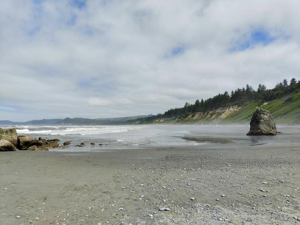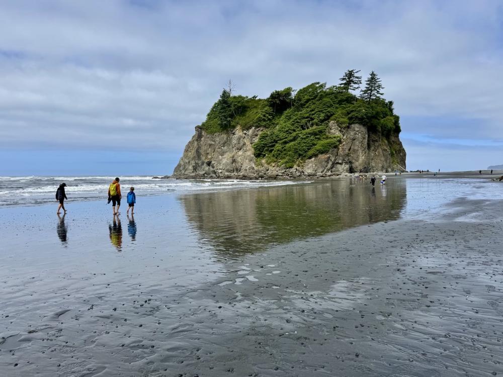 Unser erster Stopp war Forks, um Vorräte aufzufüllen. Danach ging’s weiter nach Ruby Beach – ein beeindruckender Strand mit dramatischer Kulisse: große Felsen im Meer, Treibholz am Ufer, wilder Ozean. Wir nutzten die Gelegenheit für eine kleine Wanderung am Strand.