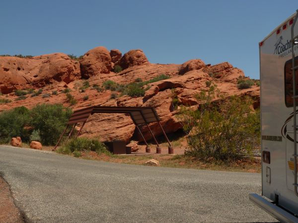 Ein ganz feiner Platz, großzügige Sites mit Schattendach inmitten roter Felsen.