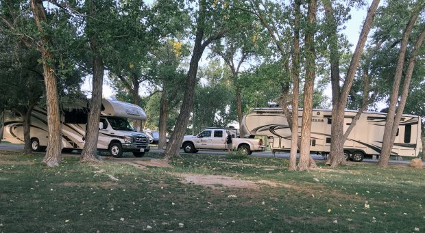 Der Weg nach Green River ist langweilig. Das einzig aufregende unterwegs ist, dass sich unser Sewer Cap (mal wieder) verabschiedet. Der hing von Anfang an auf halb Acht und hielt inzwischen nur noch mit Tape. Demnächst ist da was neues fällig. Als wir am frühen Nachmittag im State Park von Green River ist der gut besucht, wir bekommen aber problemlos noch ein Plätzchen (#GR29).