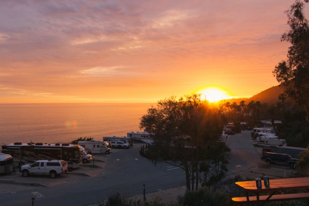 Die Kinder sind im Vons schon sehr quengelig, so dass wir die Vorräte in der Dusche verstauen und die paar Meilen zum Malibu Beach RV Park fahren. Wir hatten eine Water & Electric Site mit Seaview vorgebucht. Dort kommen wir pünktlich zum Sonnenuntergang an. Die Kinder sind schon längst im Tiefschlaf und wir verstauen Einkäufe und Gepäck im Wohnmobil. Dann schlafen auch wir schnell mit Blick auf den Pazifik ein, denn ... die Nacht sollte nicht lang sein ![]()