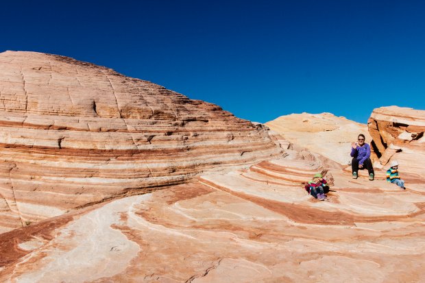 Nach dem Frühstück und einer gebührenden Verabschiedung der Felsen durch die Kinder fahren wir zum Fire Wave Trailhead. Gestern war es hier noch pickepackevoll, so früh sind wir heute die ersten und einzigen. Es ist frisch und wir ziehen los. Die Dreijährige macht wieder einen Superjob und läuft den ganzen Weg allein hin und zurück (mit ein wenig Gummibärchendoping). Der Einjährige möchte wieder von mir getragen werden.
