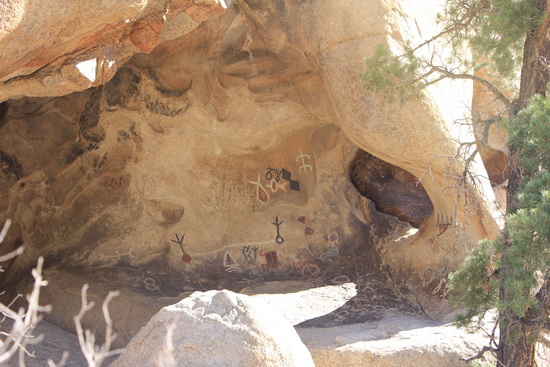 Den Mittagsschlaf nutzen wir zu einem Spaziergang am Barker Dam. Es geht mitten durch und über die Felsen, Joshua Trees überall wie auch andere seltene Kakteenarten, wie den Teddybear-Cholla.