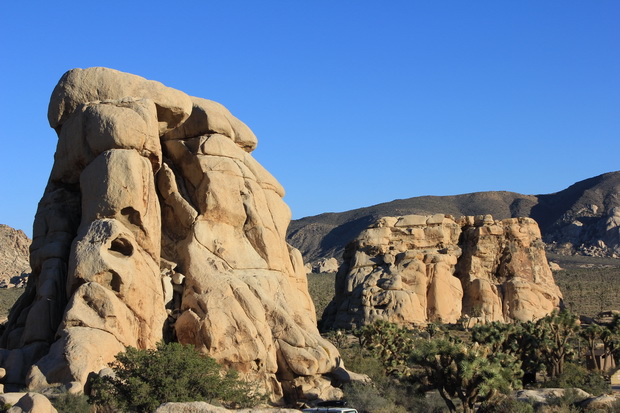 Gegen 11:30 Uhr erreichen wir das Visitorcenter des Nationalparks. Unsere große Hoffnung bewahrheitet sich, der Park hat seit heute Morgen wieder geöffnet, auch die Campgrounds sind nutzbar. Wir freuen uns riesig. Wir passieren die Parkgrenze und sind sofort von der Natur begeistert. Obwohl noch immer zur Mojave-Wüste gehörend wirkt die Landschaft durch die einmaligen, beeindruckenden Joshua-Trees ganz anders und abwechslungsreicher. Es ist schon erstaunlich, hunderte Kilometer haben wir keinen dieser Bäume gesehen, nun ganz plötzlich tauchen sie zu tausenden wie aus dem Nichts auf, das spezielle Mikroklima lässt grüßen. Wir passieren das „Wonderland of Rocks“, tolle Steinformationen, und erreichen unseren Campingplatz inmitten dieser beeindruckenden Steinberge. Schnell haben wir einen tollen Stellplatz gefunden, denn der Campingplatz ist fast noch komplett frei. Viele haben sich nach dem Shutdown wohl noch nicht auf den Weg hierhin gemacht, dies wird sich bis zum Abend auch nicht ändern.