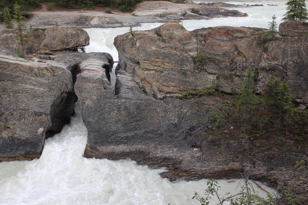 Wir fahren weiter zum Yoho NP. Nach den Regenfällen der letzten Tage traue ich uns den Weg zu den Takkakaw Falls nicht zu. Daher fahren wir direkt zum Emerald Lake. Auch hier gut besucht... Liegt wohl auch am Wochenende. Der See macht seinem Namen aller Ehre, halt emerald (smaragdfarben). Der See und die Umgebung sind auch sehr schön, gefällt uns sehr gut hier. Die Lake Lodge scheint von einem Asiaten für eine Hochzeit komplett gebucht zu sein. Auf dem Weg zurück zum Highway nehmen wir noch die Natural Bridge mit. Wie mir meine Schwägerin später erzählt, konnten sie 2001 noch direkt darüber laufen bzw. klettern. Naja ist halt alles jetzt alles abgesperrt.
