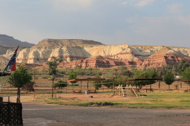 Nach einem kleinen Vitaminimbiss im WoMo geht die Fahrt weiter und wir erreichen nach kurzer Zeit unser heutiges Ziel - die Paria Canyon Guest Ranch. Wir hatten auch diesen CG vorgebucht, stellen aber fest das das in diesem Fall nicht nötig war, wir sind ziemlich allein...